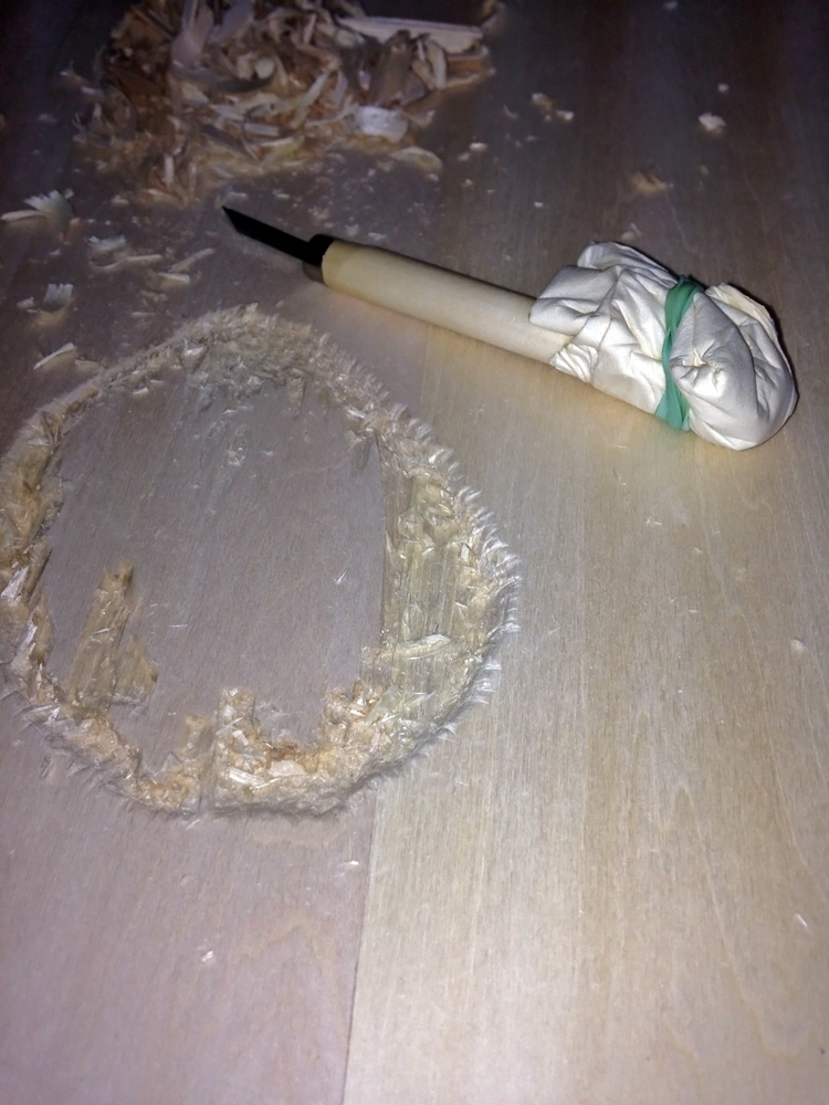 I had to replace the base that I broke, so I decided to use wood (birch) instead. But I had to also account for the broken bottom of the figure, which meant some carving.