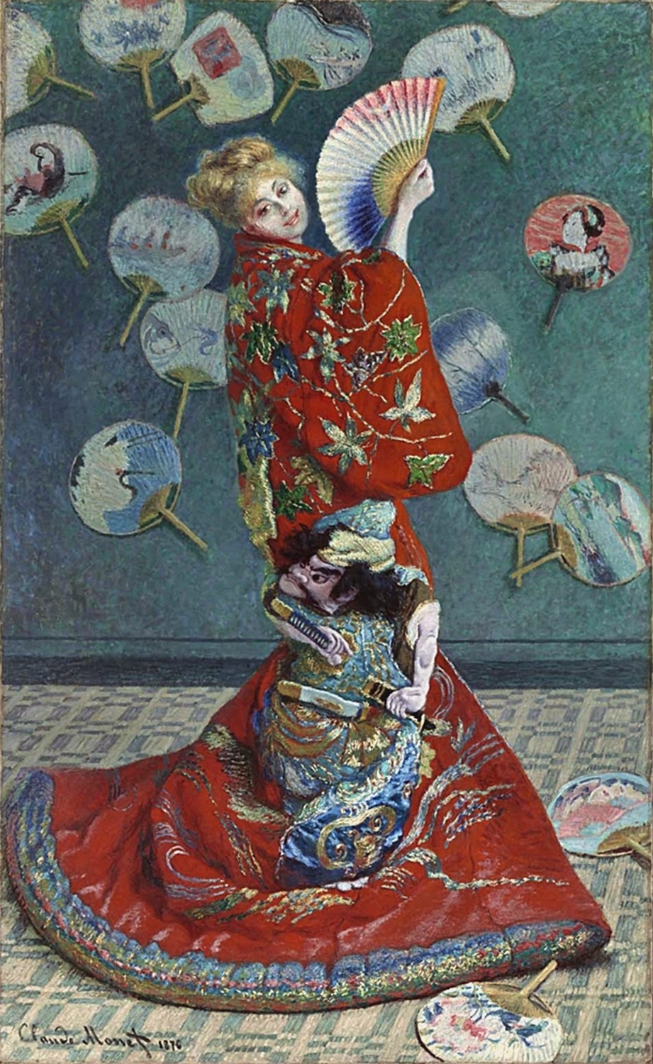 La Japonaise, Monet’s masterpiece featuring Camille in a blonde wig and beautiful kimono, has recently returned to Boston and the MFA. It is part of their permanent collection but has not seen the walls in many, many months because it was first being restored and then on loan to an exhibition in Japan. The piece itself was done as commentary, bordering on satire, of Western Europe’s brief obsession with Japanese culture in the late 19th century. Though the blonde wig and smiling face depict a conscious view of Orientalism at the time, it cannot be seen as too satirical considering that Monet’s home, to this day, has walls covered in Japanese woodblock prints.