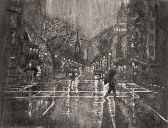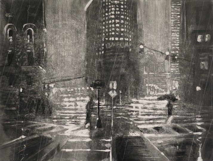 The dark and moody cityscapes continue to surprise me with how much people seem to like and respond to them. So I have revisited some recent subject matter and created a handful of smaller, atmospheric monotype prints (the original influence for the oil paintings!), that will be available at The Hagan Collection exclusively for the Cosimini Ceramics show on Sunday, November 26th from 4pm-7pm