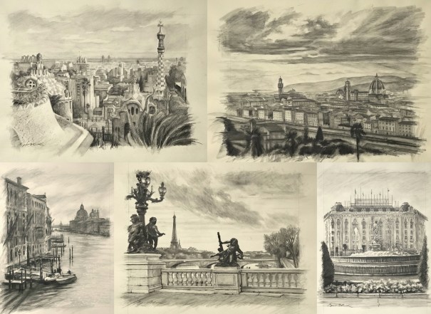 Hi All. I know it’s late in the game, but consider yourself invited to a great little show in Wellesley this afternoon. Anna’s work just gets better with each one of these yearly events and I’m thrilled to once again provide a backdrop. I’ll have 5 cityscape graphite wash paintings from some recent travels in Europe hanging as well as a handful of monotypes.